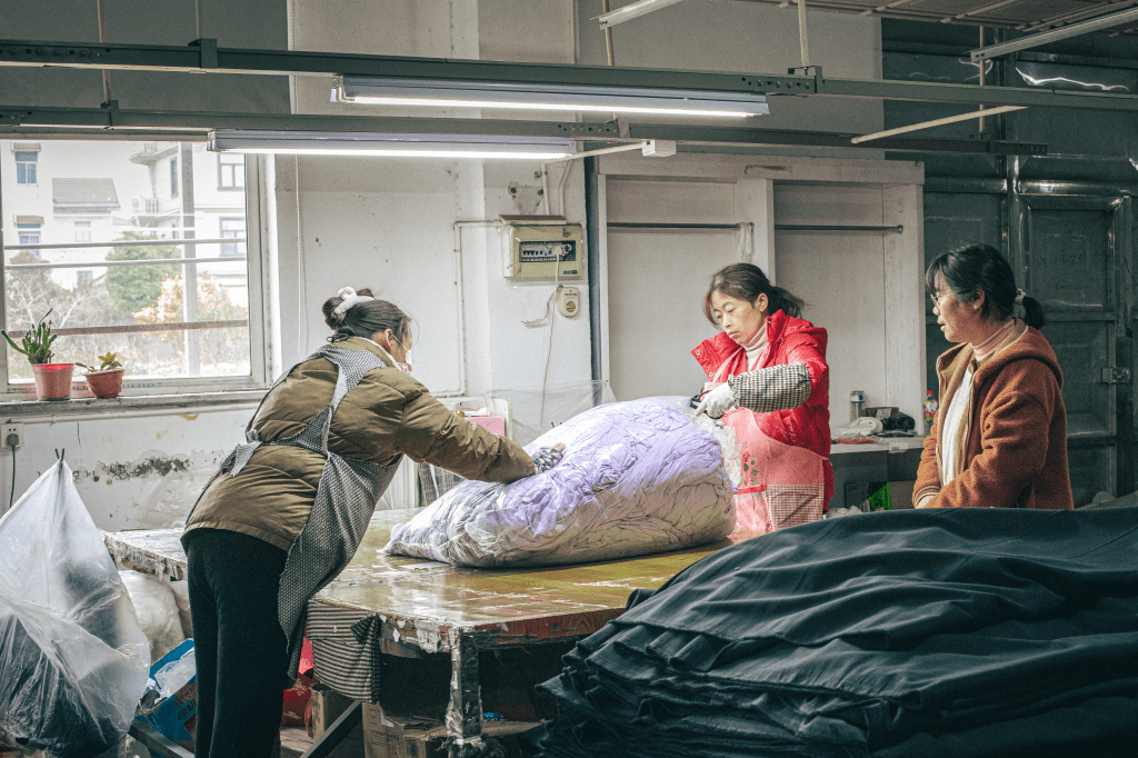 The company maintains a complete production chain, from raw material procurement to garment manufacturing. This enables us to strictly control environmental standards at every stage of production, ensuring that the entire process, from start to finish, is sustainable. Through responsible management, we reduce waste, optimize supply chain management, and lower carbon emissions, achieving true “green material to green product” management throughout the entire process. This comprehensive chain management not only helps reduce production costs but also enhances our positive impact on environmental protection.